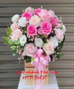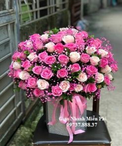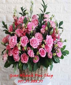 Hoa giỏ đẹp sắc hồng – HG608